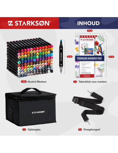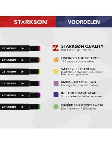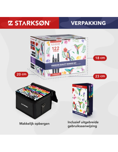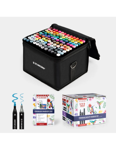 En STARKSØN®, nos esforzamos por ofrecer la más alta calidad y ofrecemos una garantía de satisfacción del 100 %. Este set profesional de 122 rotuladores está elaborado con los más altos estándares de calidad, ¡para que puedas demostrar tu talento!