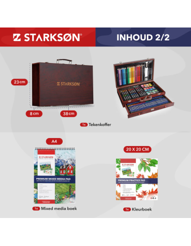 Set completo de dibujo con estuche de mandera y 141 piezas para obras de arte más creativas sobre lienzo o papel Starkson.