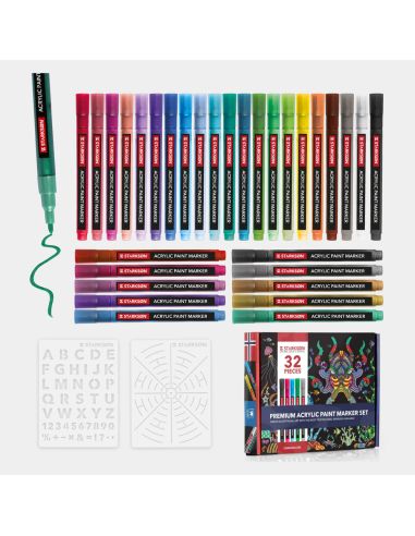 SET 32 Piezas con 30 Rotuladores Acrílicos Punta Fina 0,7 mm Starkson