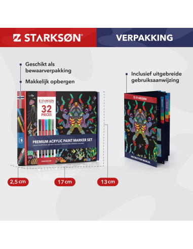 En STARKSØN®, nos esforzamos por ofrecer la más alta calidad y ofrecemos una garantía de satisfacción del 100 %. Este set de 32 piezas de dibujo con marcadores acrílicos está elaborado con los más altos estándares de calidad, ¡para que puedas demostrar tu talento en cualquier objeto!.