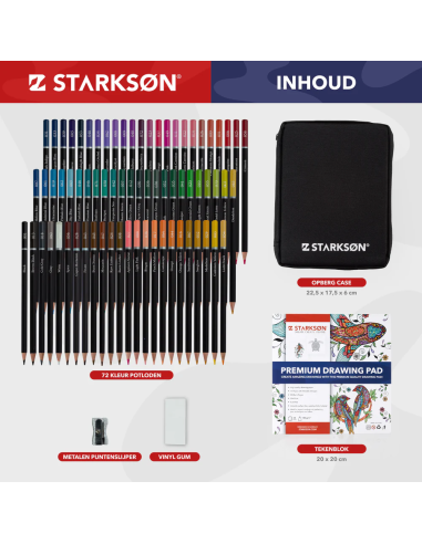 Set de 76 piezas con 72 lápices de colores, sacapuntas, bloc, borrador y estuche para dibujar Starkson.