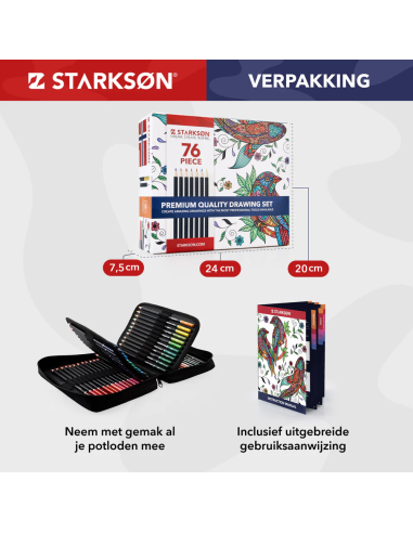 En STARKSØN®, nos esforzamos por ofrecer la mejor calidad y ofrecemos una garantía de satisfacción del 100 %. El set profesional de dibujo a lápiz de 76 piezas está fabricado con los más altos estándares de calidad.