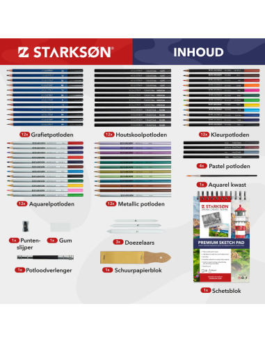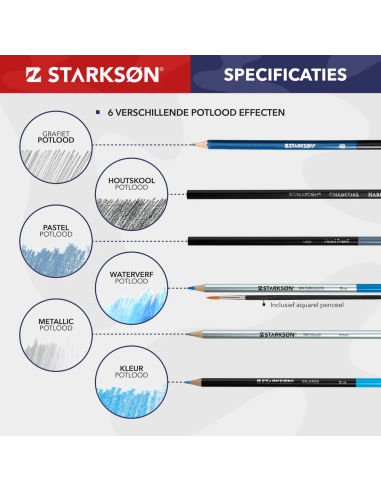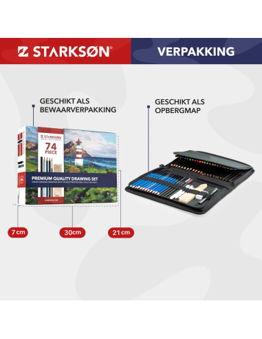 En STARKSØN® buscamos la mejor calidad y una garantía de satisfacción del 100%. ¡El set profesional de dibujo a lápiz de 74 piezas está diseñado con los más altos estándares de calidad!.