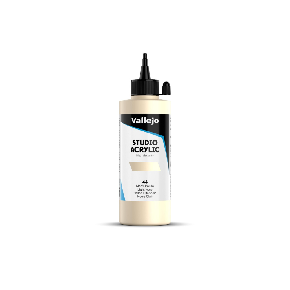 Pintura Acrylic Studio Vallejo es una pintura acrílica con una selección de pigmentos escogidos en función de su máxima estabilidad y permanencia a la luz, con resina 100% acrílica, no se emplean cargas ni pigmentos derivados de metales pesados como cadmios o cobaltos, si contienen mateantes que confieren a los colores un acabado satinado.