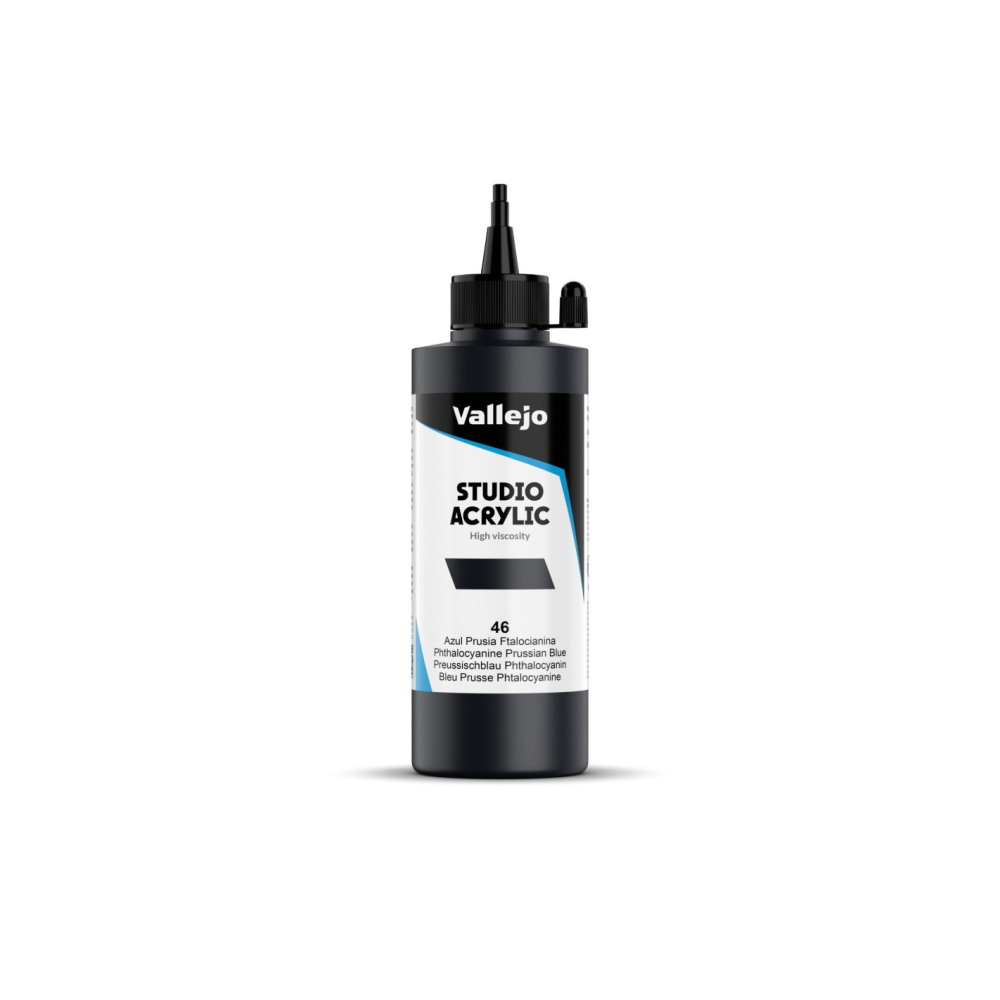 Pintura Acrylic Studio Vallejo es una pintura acrílica con una selección de pigmentos escogidos en función de su máxima estabilidad y permanencia a la luz, con resina 100% acrílica, no se emplean cargas ni pigmentos derivados de metales pesados como cadmios o cobaltos, si contienen mateantes que confieren a los colores un acabado satinado.