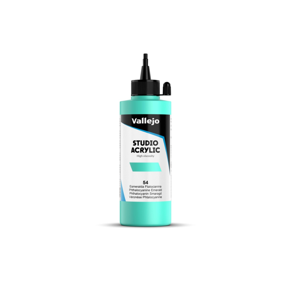 Pintura Acrylic Studio Vallejo es una pintura acrílica con una selección de pigmentos escogidos en función de su máxima estabilidad y permanencia a la luz, con resina 100% acrílica, no se emplean cargas ni pigmentos derivados de metales pesados como cadmios o cobaltos, si contienen mateantes que confieren a los colores un acabado satinado.