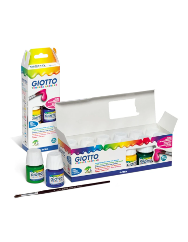 Estuche temperas Giotto con 6 colores en tamaños de 25 ml + pincel.
