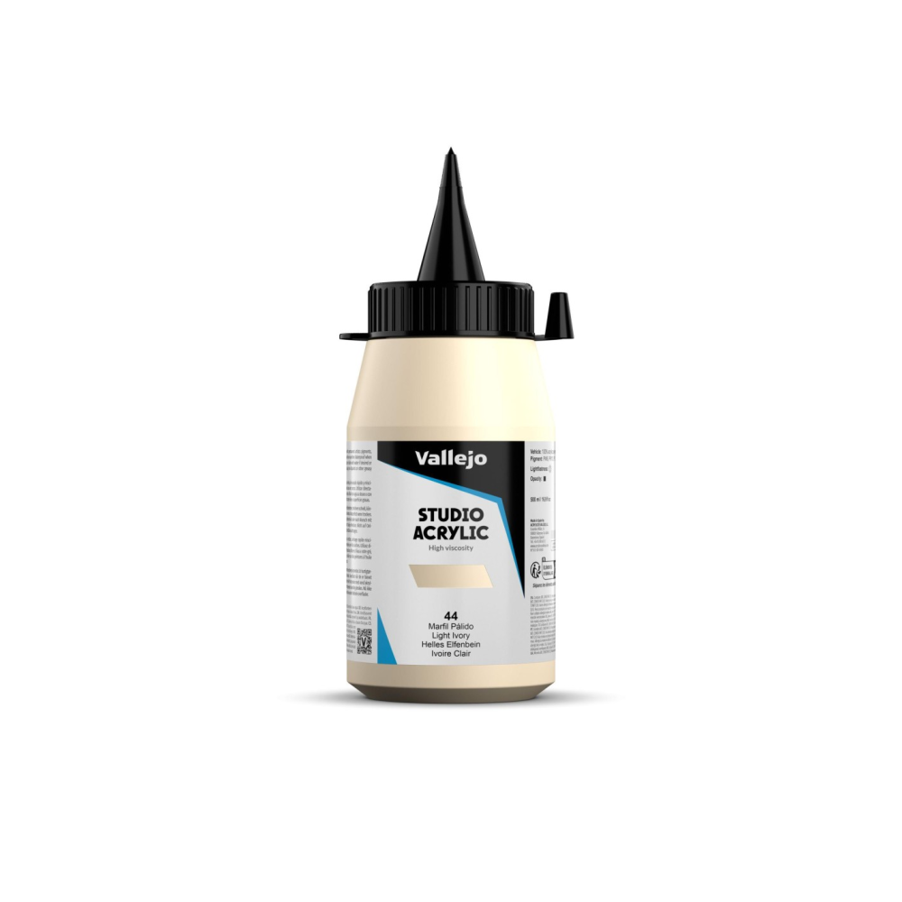Pintura Acrylic Studio Vallejo es una pintura acrílica con una selección de pigmentos escogidos en función de su máxima estabilidad y permanencia a la luz, con resina 100% acrílica, no se emplean cargas ni pigmentos derivados de metales pesados como cadmios o cobaltos, si contienen mateantes que confieren a los colores un acabado satinado.