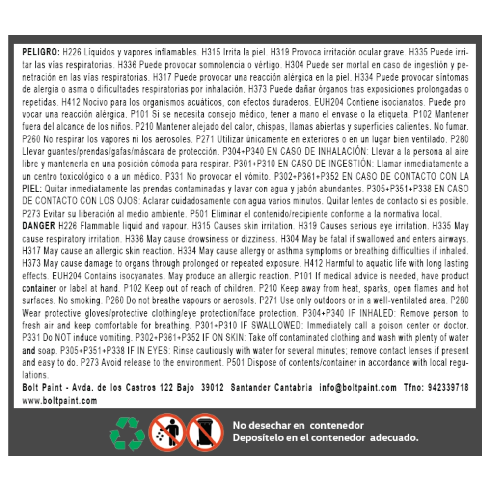 Kit Barniz acrílico 2:1 HS + Endurecedor estandar (alto contenido en sólidos) de 2 componentes brillante anti-scratch BOLT de alta calidad, formulado para el repintado de automóviles mediante el sistema bicapa.