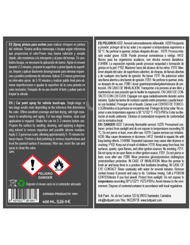 1 Spray de pintura color base 400 ml con dos boquillas, una de precisión para pequeñas superficies y otra que simula la aplicación a pistola.