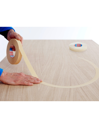 Cinta Tesa 4319 especialmente elástica de papel muy crepado para enmascarar superficies curvas.