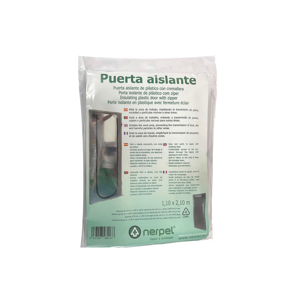 Puerta aislante con cremallera de facilísima instalación, aísla toda un área del polvo y la suciedad, dispone de un cómodo acceso al lugar de trabajo a través de la cremallera con apertura hacia ambos lados.