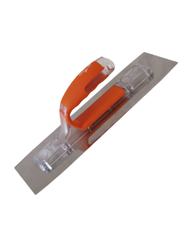 Llana inoxidable microacabados de alta calidad para el maestro estucador con mango bimateria ergonómico y cantos redondeados con una hoja pulida espejo.