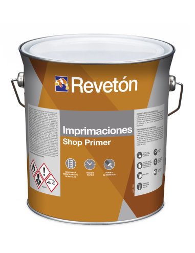 Imprimación todoterreno Shop Primer Especialmente indicado para la aplicación de superficies metálicas tanto ferrosos, como diferentes aleaciones no ferrosas (galvanizados, aluminios, zincados, etc.), que presenten problemas de adherencia. Como pre-tratamiento del acero chorreado permitiendo diferentes acabados (alcídicos, Poliuretanos, Epoxis, etc.).