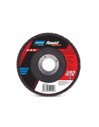 Disco Rapid Strip Norton con fibras sintéticas fuertes y abrasivo de carburo de silicio extra grueso para la eliminación de revestimientos sobre diversos materiales.