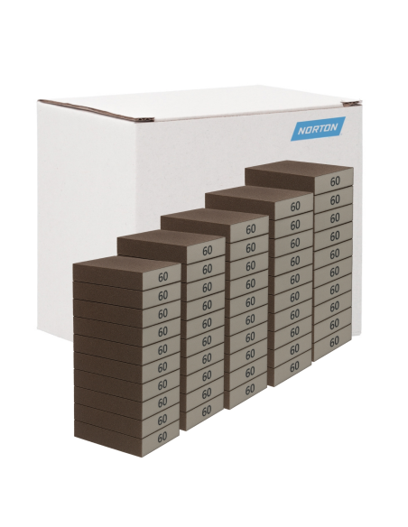 Caja 60 tacos de lija Norton con cuatro caras de abrasivo para el lijado de cualquier superficie, muy manejable, garantiza resultados excelentes en madera, plásticos, pinturas, barnices y materiales compuestos, puede ser usado en húmedo y en seco.