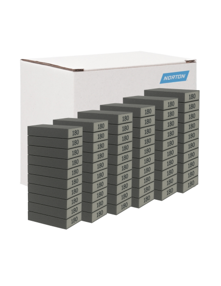 Caja 60 tacos de lija Norton con cuatro caras de abrasivo para el lijado de cualquier superficie, muy manejable, garantiza resultados excelentes en madera, plásticos, pinturas, barnices y materiales compuestos, puede ser usado en húmedo y en seco.