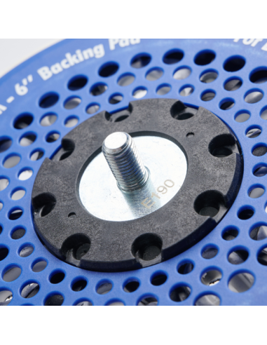 Plato con base de velcro y diámetro de 150 mm y métrica 5 con un sistema multicanal de aspiración que logra una eliminación total del polvo de la superficie de trabajo.