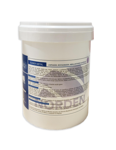 Limpiador, restaurador, abrillantador de metales Kliner Metal de Quimsa, crema suave de acción rápida que limpia, restaura y pulimenta en una sola operación. Contiene un material abrasivo suave que pule sin rayar. Desengrasa, pule y abrillanta todo tipo de metales. Se elimina fácilmente y sin dejar ningún tipo de huella.